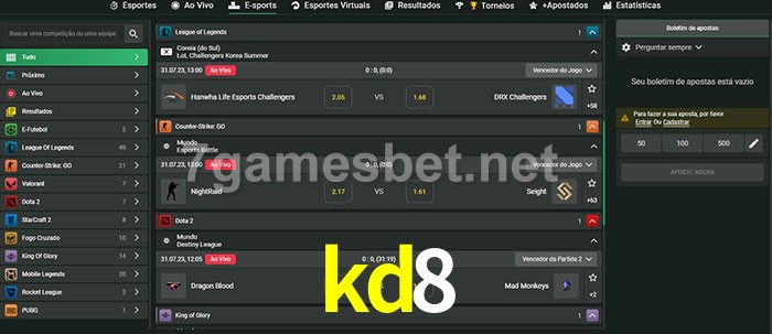 A aposta kd8 oferece aos jogadores a experiência mais conveniente de apostas em eSports!